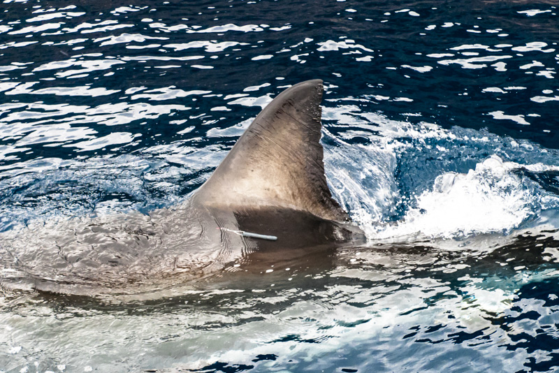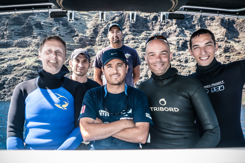 This year was an El Nino year, the water was 3°c warmer than it should be and the sharks stayed well below the 40m thermocline, where the conditions are more stable for them. The visibility was not as good either. The sharks rarely visited the surface waters. Well, that’s just the cycle of nature, we had to deal with it, we had to be more opportunistic to tag the sharks as they were not staying very long after their curiosity in the boat and the freedivers was satisfied. Despite these difficult conditions and the usual problems you can face during expeditions in remote locations….we could eventually tag 14 great whites, four of them with a new generation tags that were deployed for the first time ever. These tags will bring groundbreaking informations about the social behavior of the great whites during their annual migration to Dr Mauricio Hoyos and Dr Yannis Papastamatiou, the leading scientist of the study .We were aiming specifically at male sharks to place these new tags.