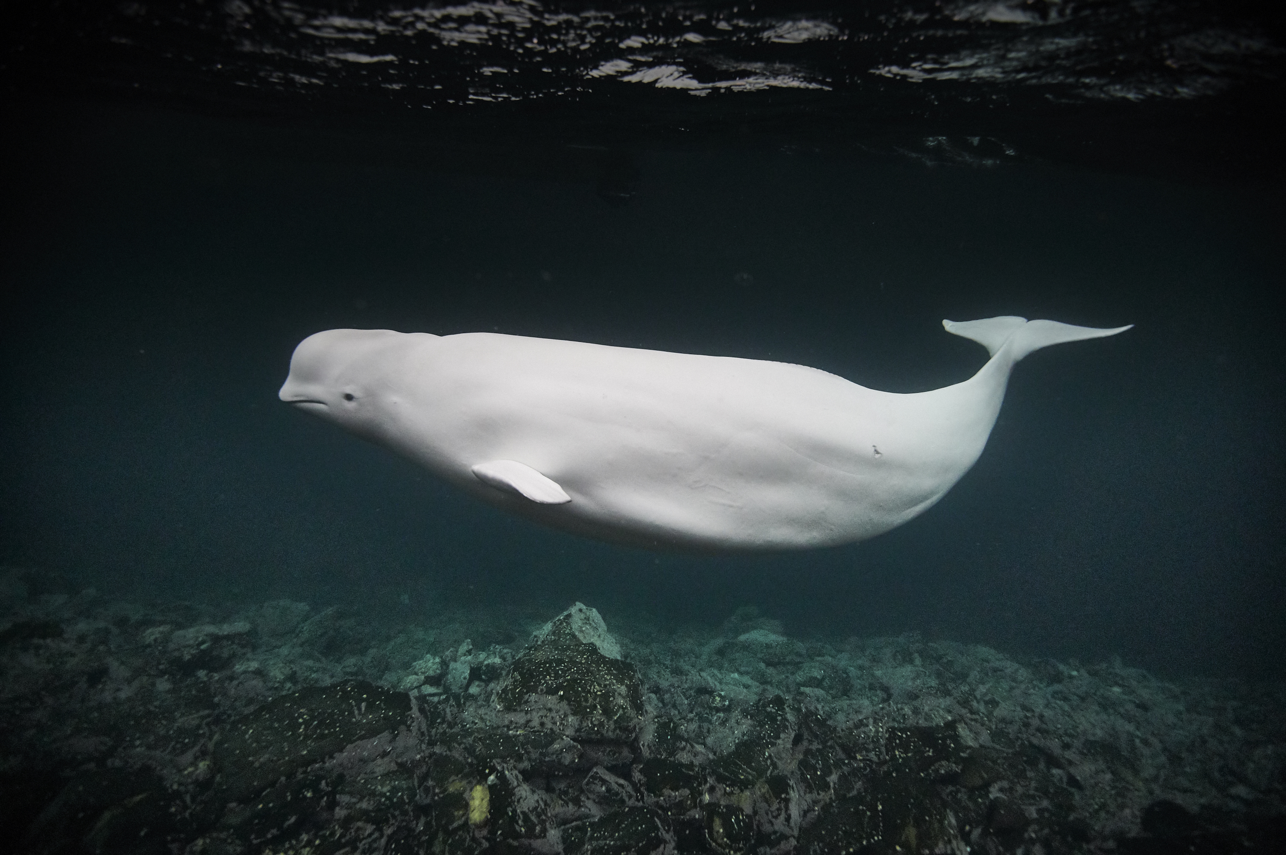 This adult male beluga appeared last april, following a fishing boat, he was wearing a kind of dorsal harness. A fisherman got in the water to free him, the whale followed the boat into the harbor qnd since then he’s been travelling northern Norway’s fjord looking for human contact. That is where things are getting interesting.